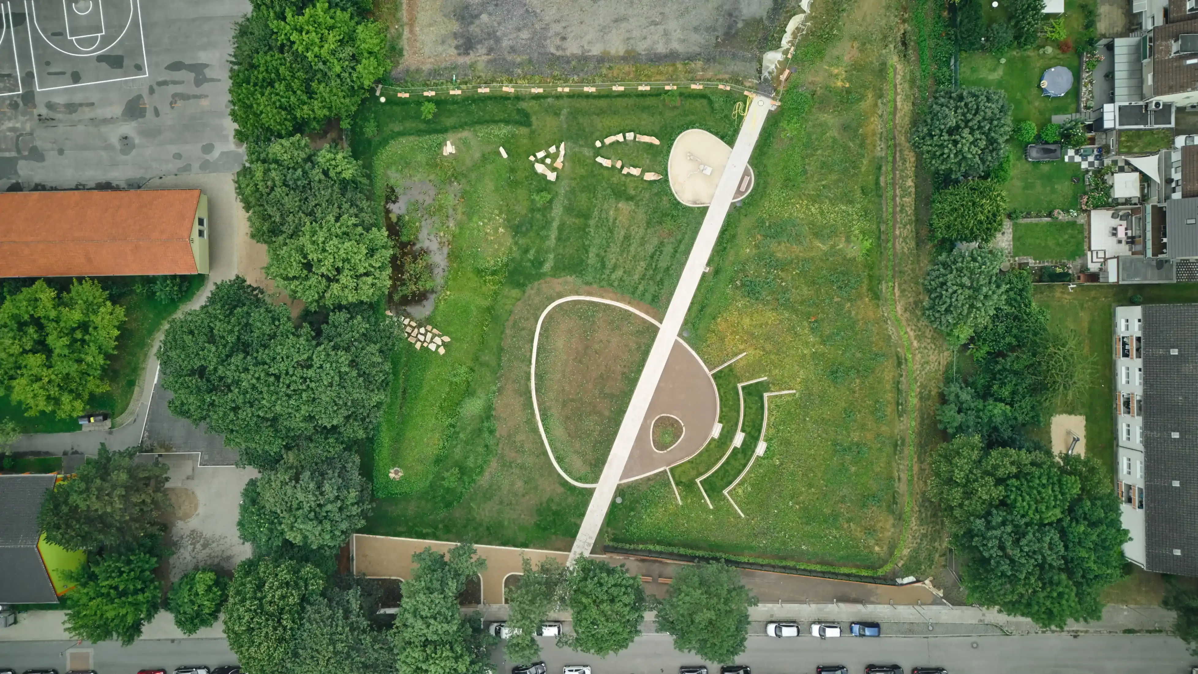 Das gesamte Areal umfasst eine Fläche von rund 12.000 m², bestehend aus dem Sportplatz, dem angrenzenden Kinderspielplatz und der ehemaligen Zufahrt. Rund ein Drittel der Gesamtfläche soll als Wohnbauland für Neubauten zur Verfügung stehen. Diese sollen am nördlichen Rand des Sportplatzes entstehen und sich an der bisherigen Bebauung orientieren. Das Highlight des Projektes ist jedoch der entstehende Quartierspark, der durch seine Gestaltung exemplarisch verschiedene Nutzungsangebote mit den Möglichkeiten eines zeitgemäßen Regenwassermanagements aufzeigen soll.