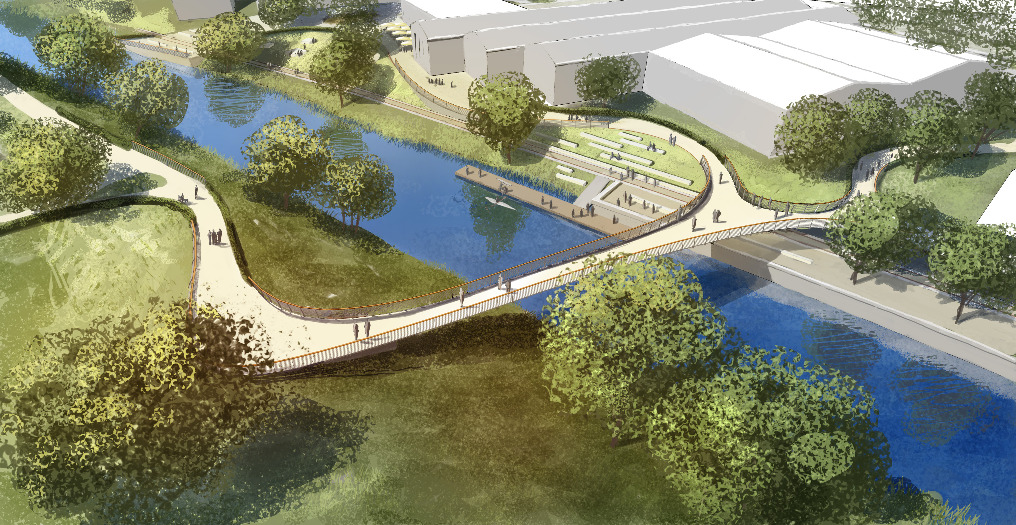 Der Schleusengraben, der die beiden Quartiersteile von Bergedorf bisher voneinander trennt, wird mit einem attraktiven Brückenbauwerk überwunden.